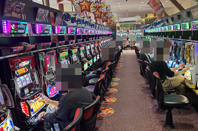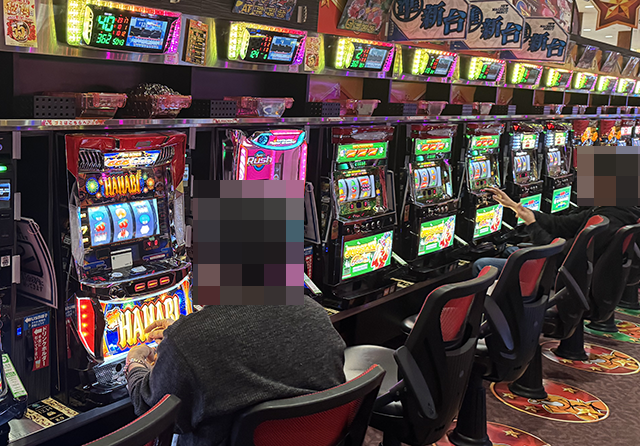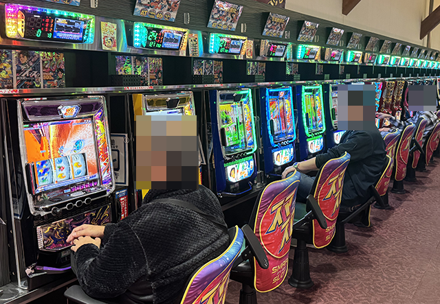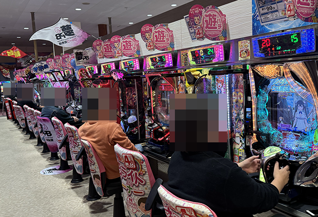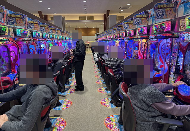 海物語シリーズをはじめ、さまざまな機種でプレイヤーは楽しそうに遊技をおこなっていた。
