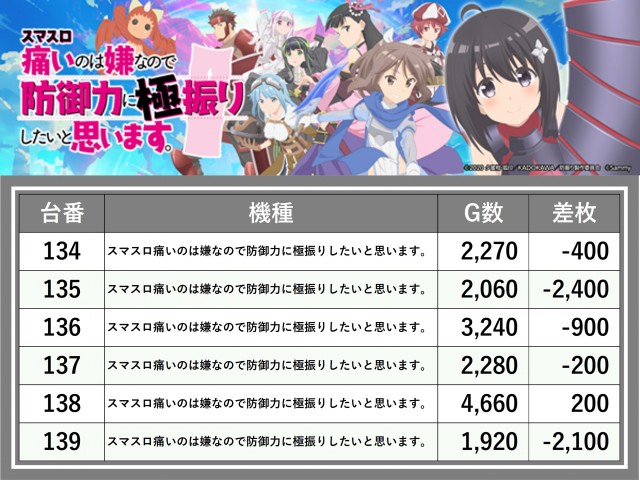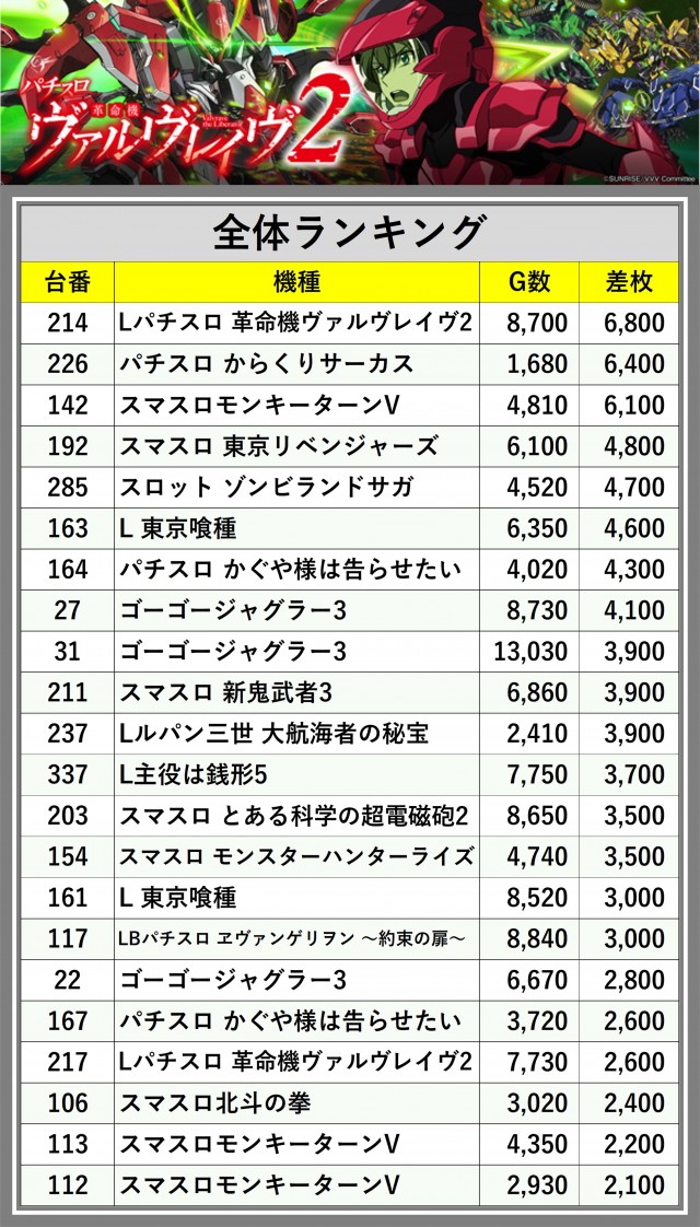 厳選された取材対象機種をはじめ、その他スロット全体から好記録が飛び出した!プレイヤーが楽しんだ1日を下記データにて振り返ってみて欲しい。