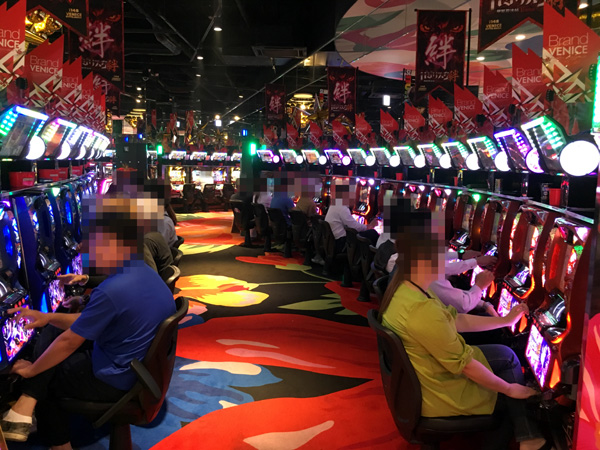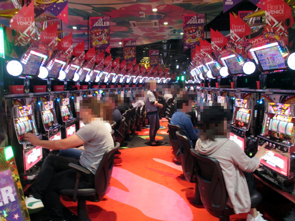 ジャグラーシリーズも人気。多くのプレイヤーでにぎわい、シマ全体から活気が感じられた。