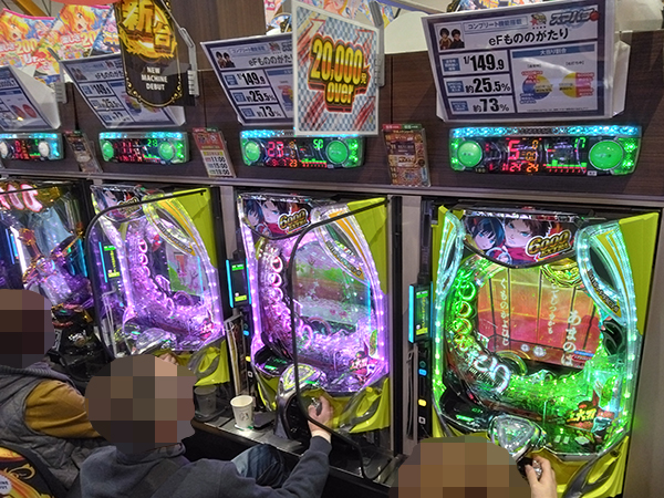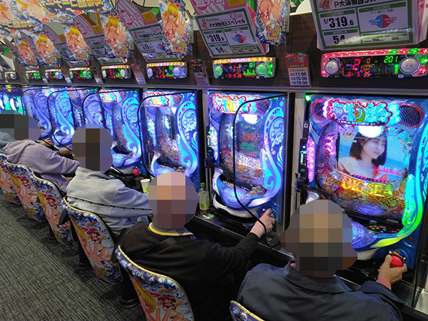 店内では貸し玉料金を問わず様々な機種で、心ゆくまで楽しむプレイヤーの姿が見られた。