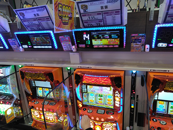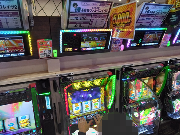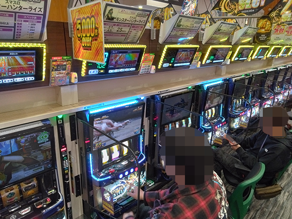 500円/90枚パチスロの稼働も高い。プレイヤーたちが嬉しそうにレバーを叩く姿を目撃している。