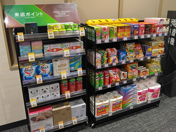 景品コーナーは豊富な品揃えで、日用品やお菓子など様々なアイテムが用意されていた。