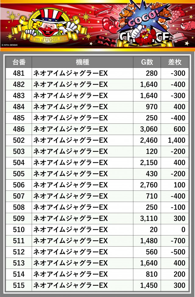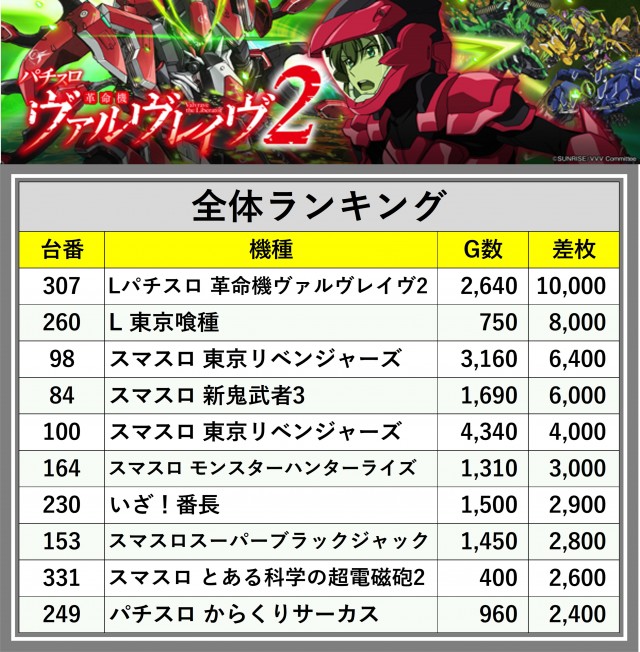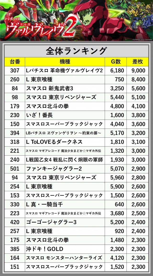厳選された取材対象機種をはじめ、その他スロット全体から好記録が飛び出した!プレイヤーが楽しんだ1日を下記データにて振り返ってみて欲しい。