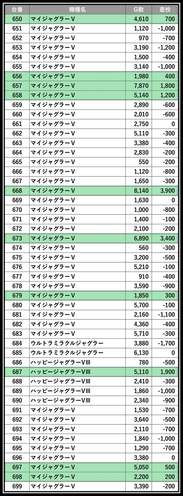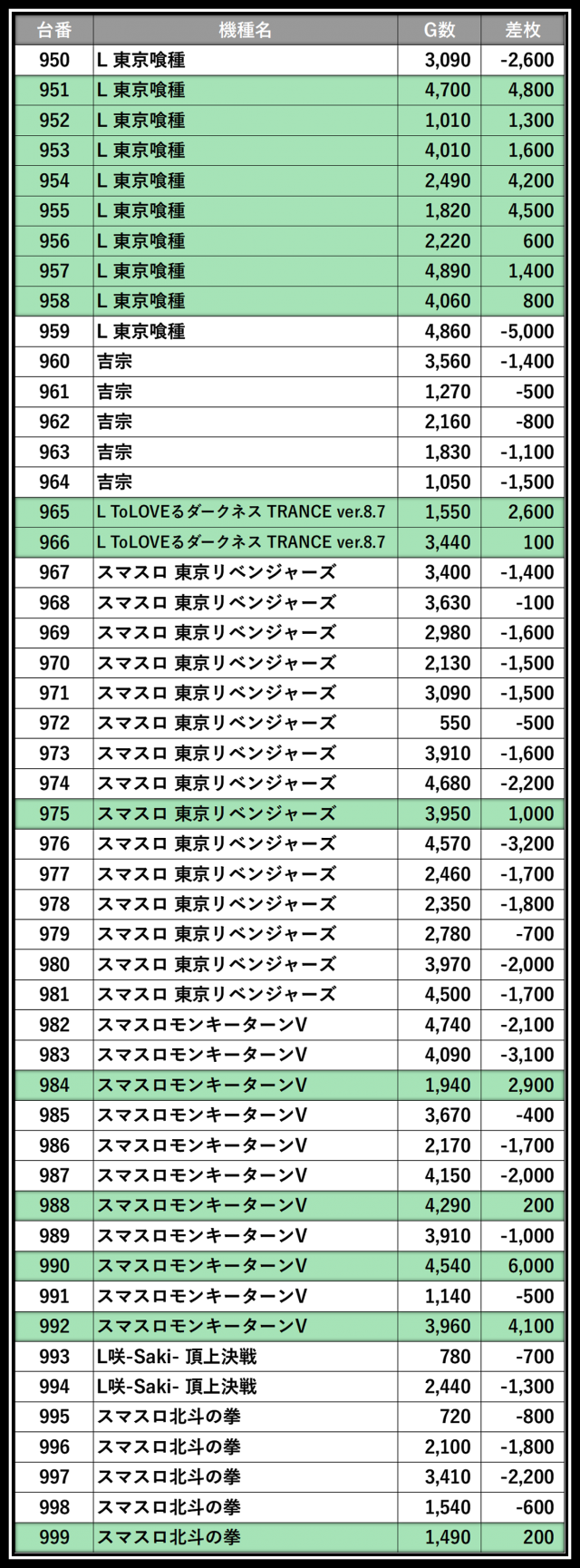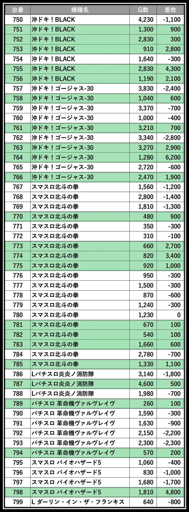 ※差枚数順に掲載しています