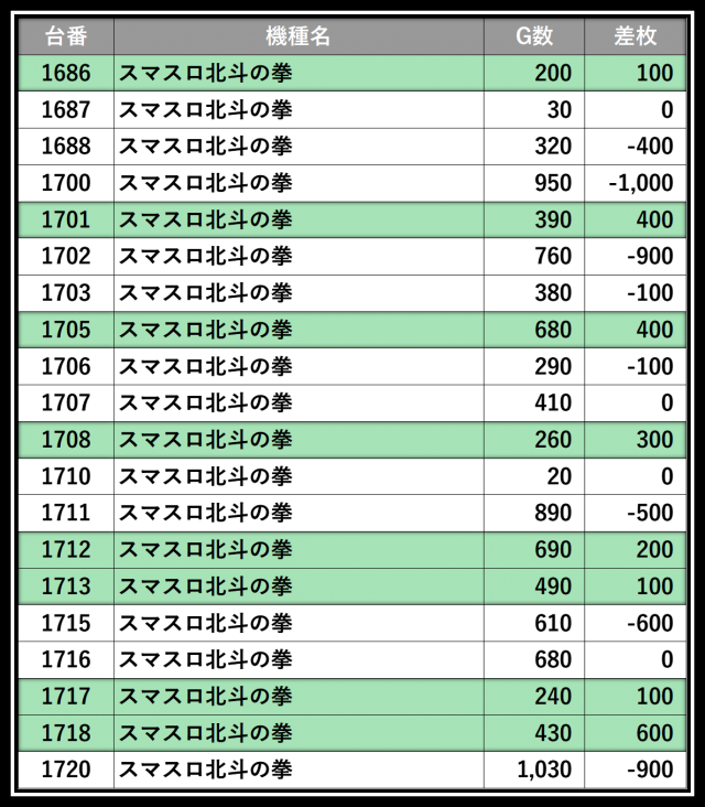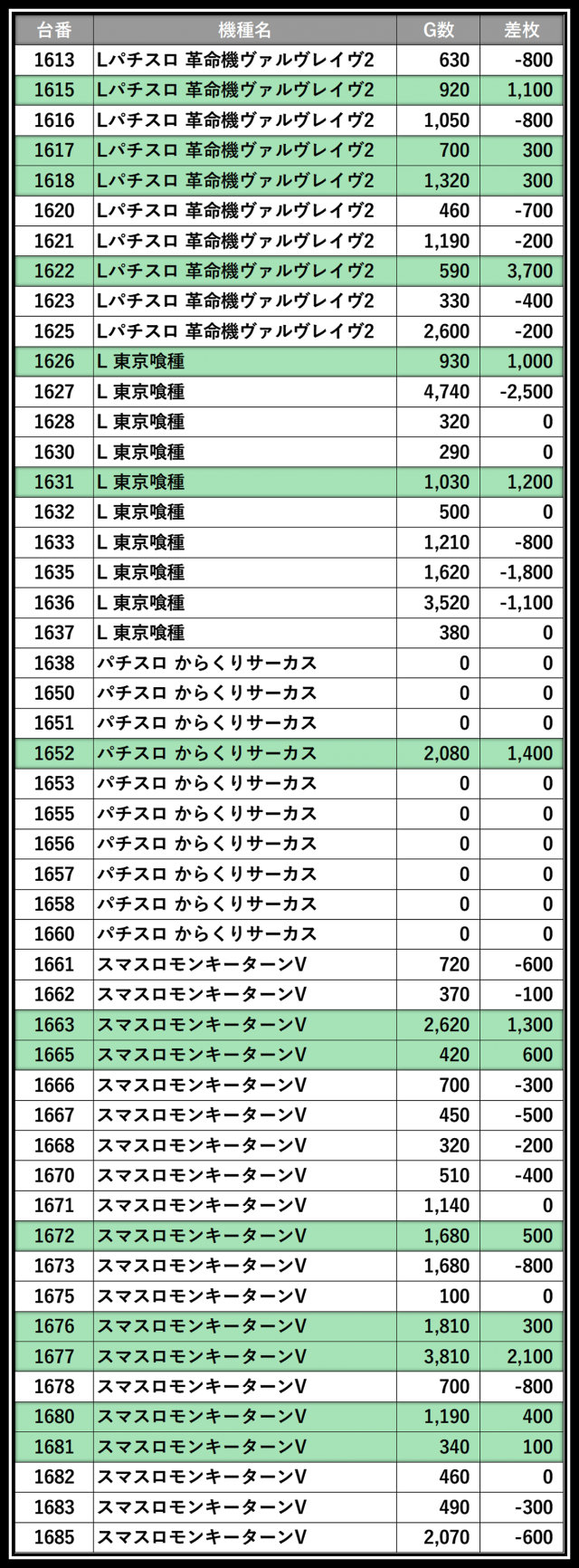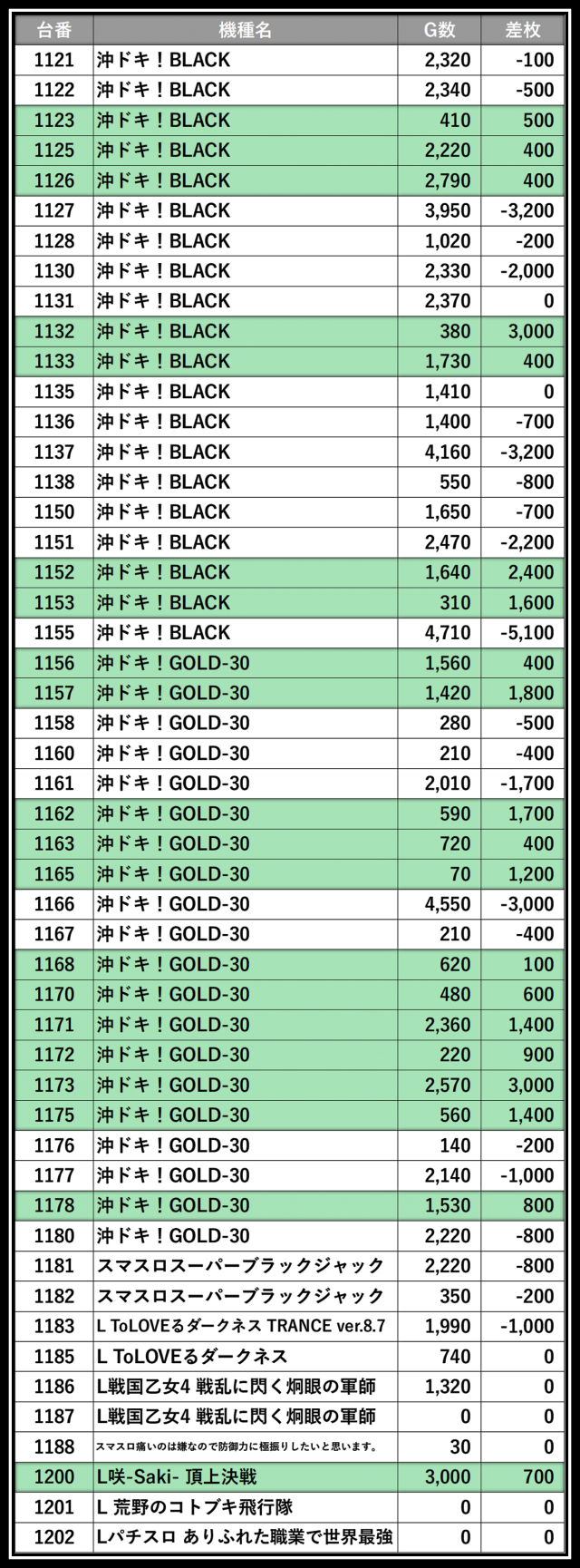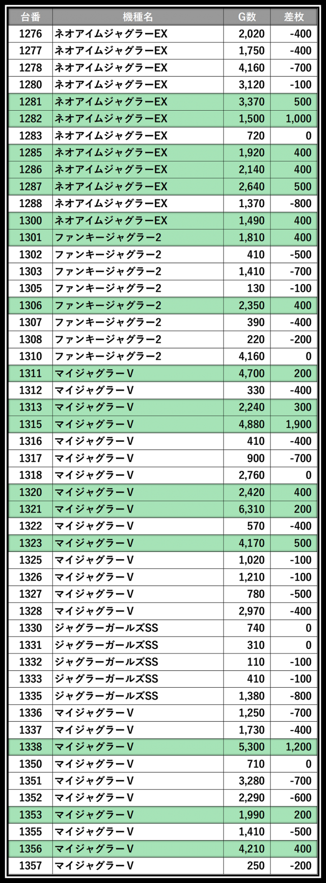 ※差枚数順に掲載しています