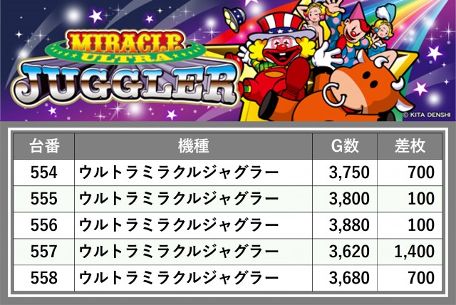 厳選された取材対象機種をはじめ、その他スロット全体から好記録が飛び出した!プレイヤーが楽しんだ1日を下記データにて振り返ってみて欲しい。