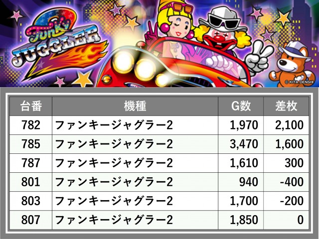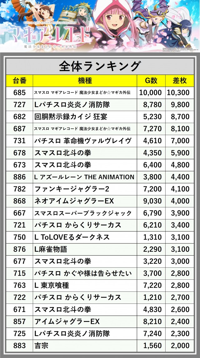 厳選された取材対象機種をはじめ、その他スロット全体から好記録が飛び出した!プレイヤーが楽しんだ1日を下記データにて振り返ってみて欲しい。