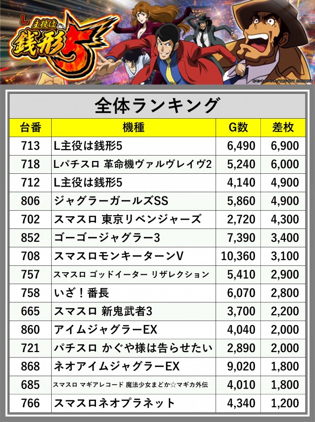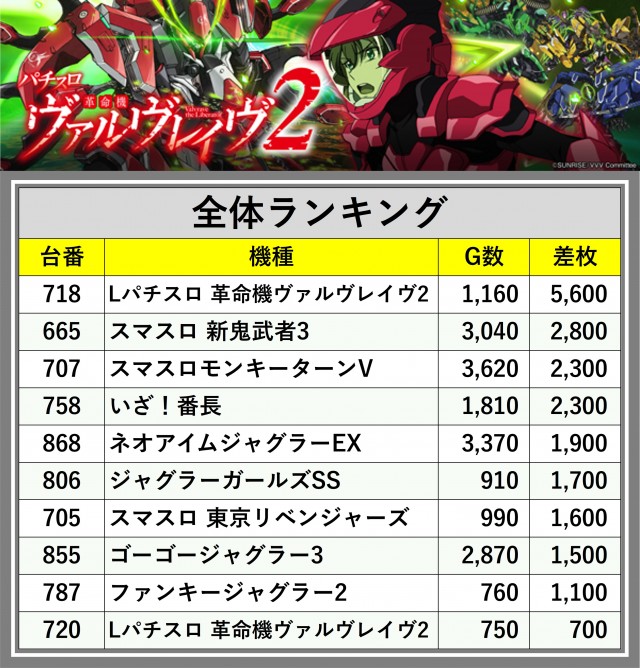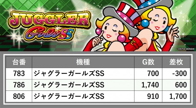 厳選された取材対象機種をはじめ、その他スロット全体から好記録が飛び出した!プレイヤーが楽しんだ1日を下記データにて振り返ってみて欲しい。