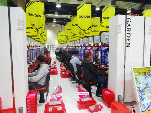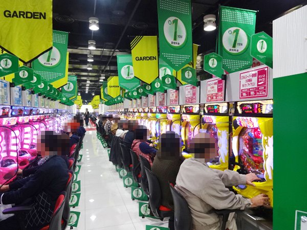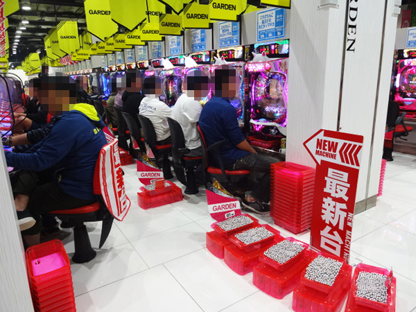 1.04円・1000円/1920玉・1000円/4800玉といった低貸し玉パチンコも大好評。特に海物語シリーズの人気は高く、空き台を見つけるのがやっとという状況だった。