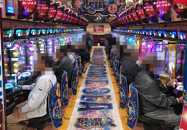 「CR牙狼GOLDSTORM翔」や海物語シリーズなど、さまざまな機種で活気のあるシーンを目にした。