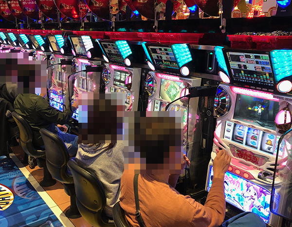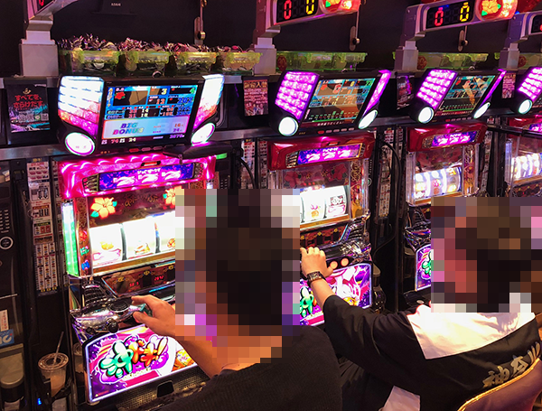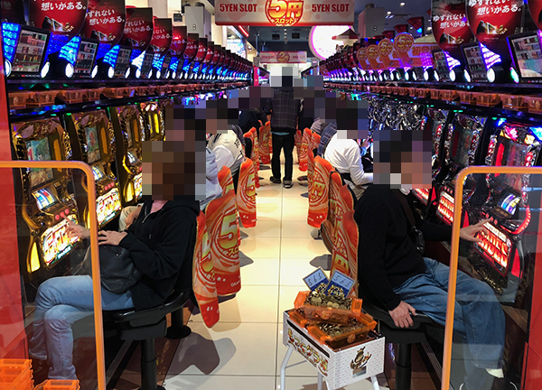 20円パチスロの状況をうかがうと、「沖ドキ!-30」や「バジリスク~甲賀忍法帖~絆」が人気。見事なパフォーマンスを披露するプレイヤーが多く、シマ全体に華やかな光景が広がっていた。