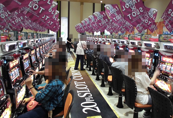 14時頃の20円パチスロのなかで、人気を集めていたのが「沖ドキ!-30」とジャグラーシリーズ。プレイヤーたちは機種の特徴をうまく活かし、遊技を満喫している様子であった。