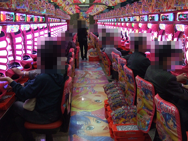 15時すぎの4円パチンコでは、前日と同様に、「ぱちんこCR北斗の拳7 転生」と「CRスーパー海物語IN沖縄4」がにぎやかなムード。機種の性能を引き出しているといったプレイヤーが目立ち、満面の笑みを浮かべていたことも印象に残っている。