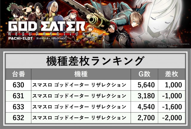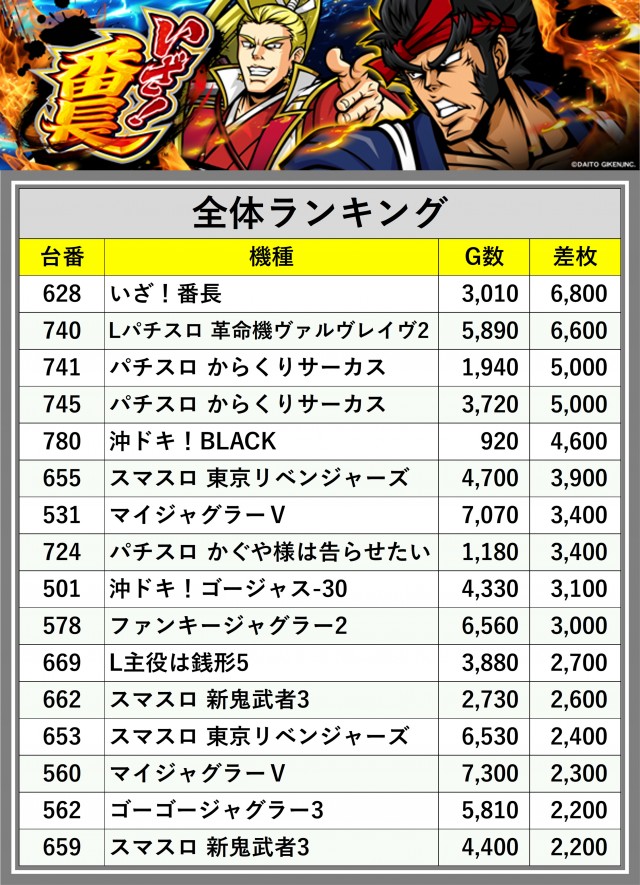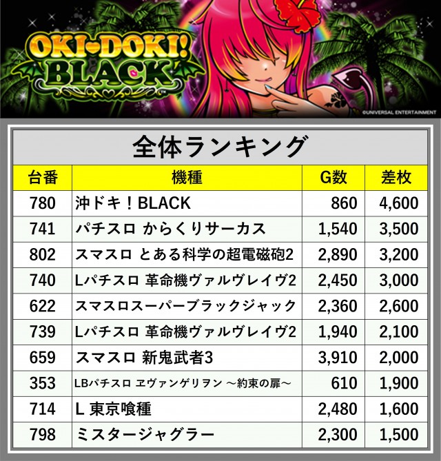 ※差枚数順に掲載しています