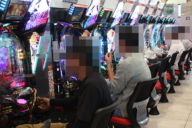 「スマスロ 新鬼武者3」や「スマスロモンキーターンV」も空き台はなく、大にぎわい。