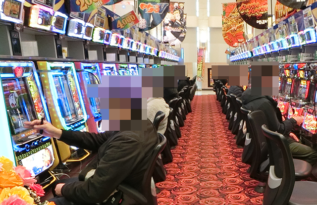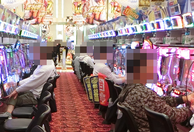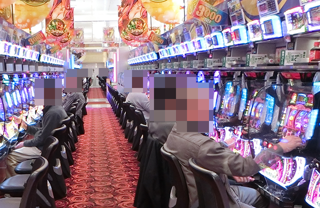 「マイジャグラーⅤ」や「新ハナビ」にも遊技を満喫しているような姿があり、活気に満ちていた。