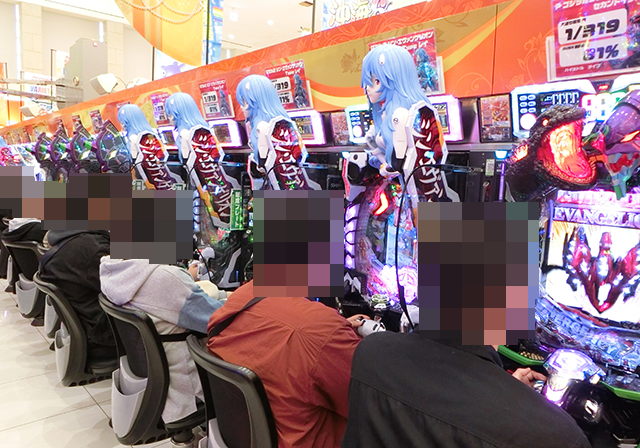 「新世紀エヴァンゲリオン~未来への咆哮~」や「ぱちんこ シン・エヴァンゲリオン Type レイ」などのにぎわいが大きく、持ち玉で遊技をおこなう姿も多かった。