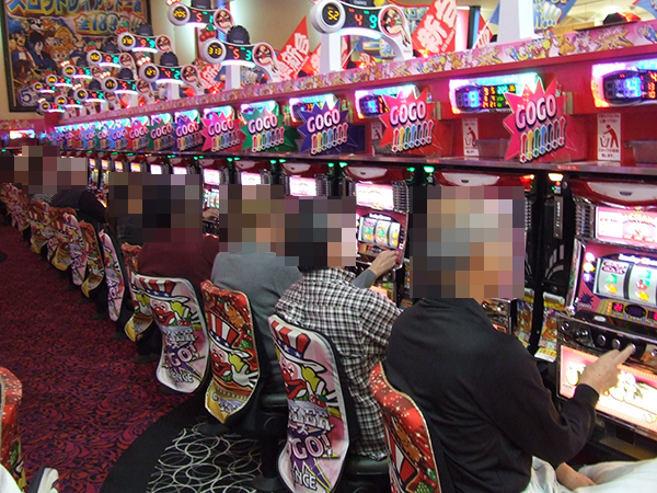 5円パチスロにおいても、プレイヤーたちは楽しげな様子。