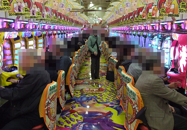 店内を巡回しているスタッフたちはキビキビと行動し、呼び出しなどにも笑顔で対応。遊技台の清掃を素早くおこない、快適な遊技環境を維持していた。