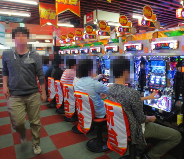パチスロコーナーでは新台の「パチスロ バイオハザード6」のプレイヤーたちの表情が輝いており、どの台も大盛況。