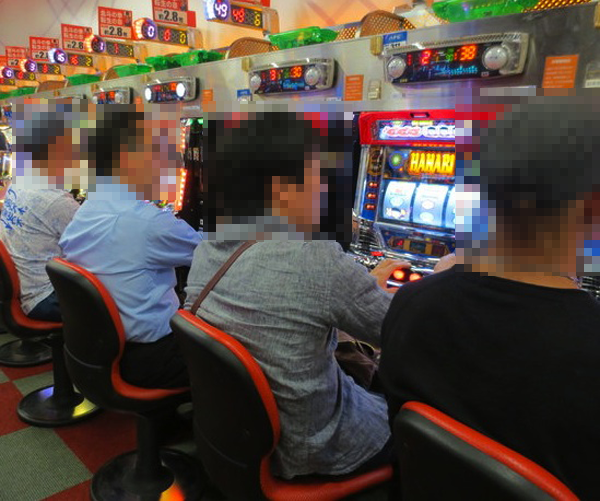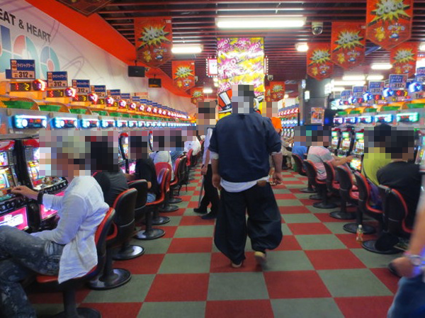定番の「押忍!サラリーマン番長」やボーナスタイプの「ハナビ」やジャグラーコーナーも活気があり稼働率は100%。