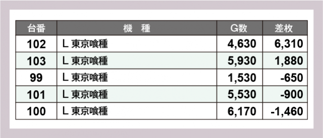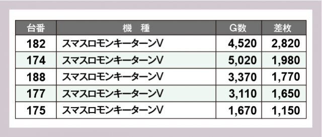 ※差枚数順に掲載しています