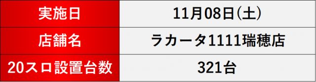 11月08日(土)ラカータ1111瑞穂店にて、DMMぱちタウンの新感覚取材「スロセレ」を実施。
