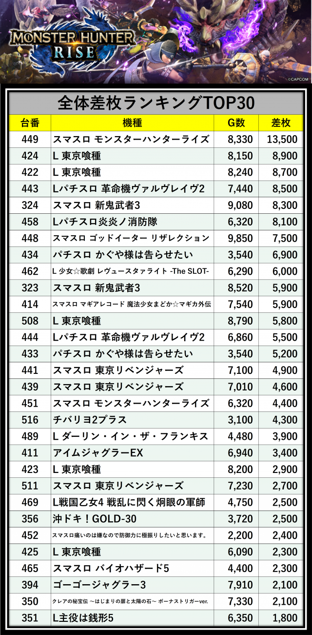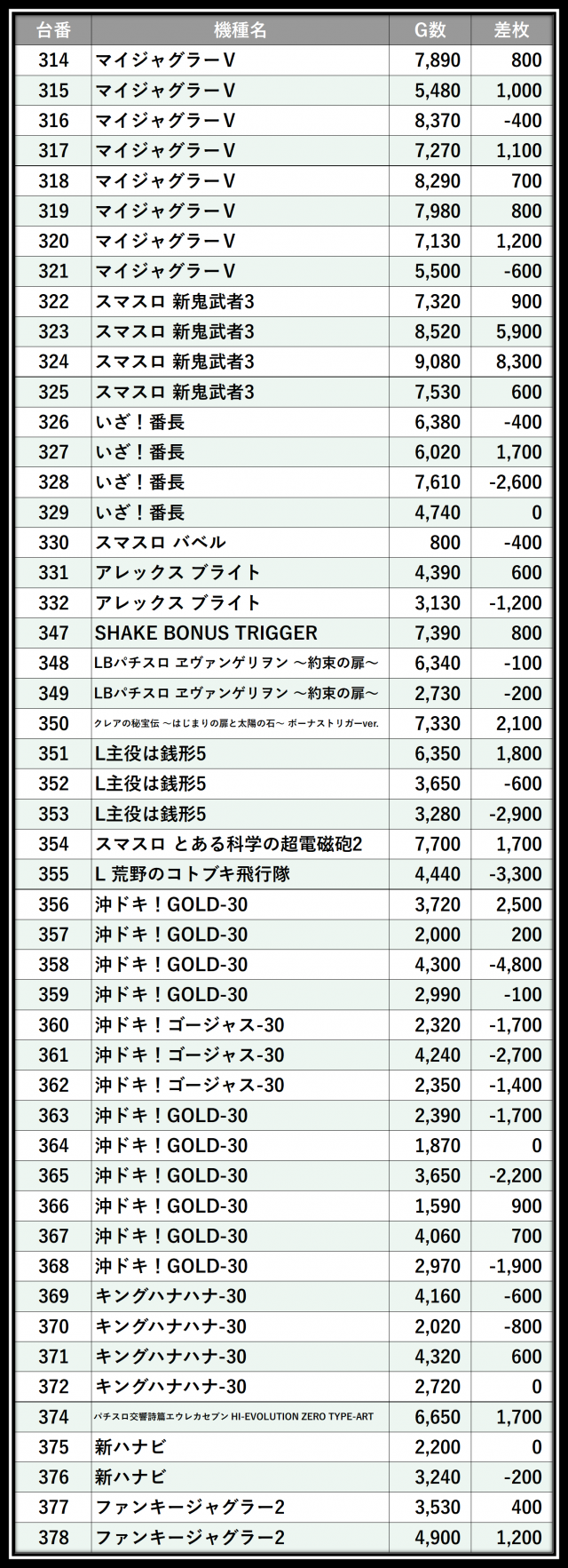 その結果の中から、ぱちタウンが注目すべきポイントを厳選してユーザーにお届け!プレイヤーが楽しんだ一日を下記データにて振り返ってみて欲しい。