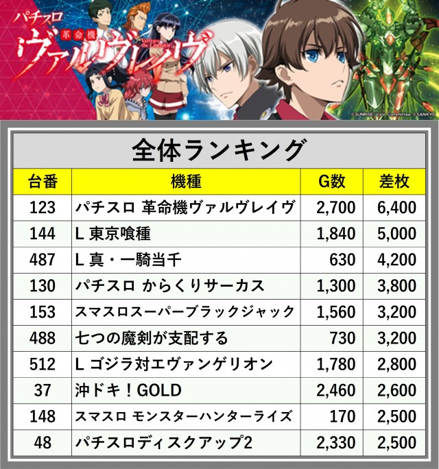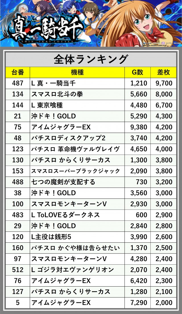 厳選された取材対象機種をはじめ、その他スロット全体から好記録が飛び出した!プレイヤーが楽しんだ1日を下記データにて振り返ってみて欲しい。