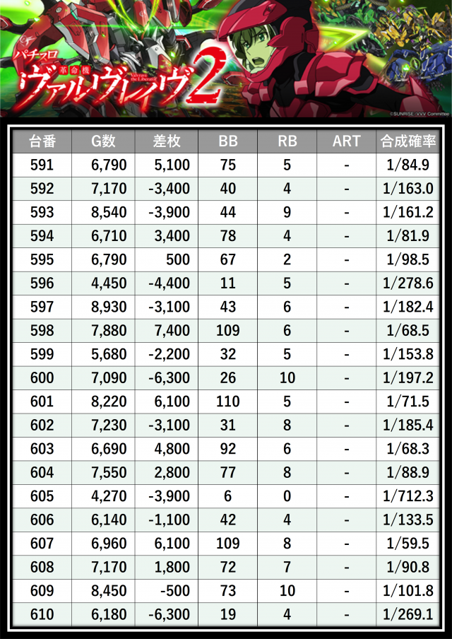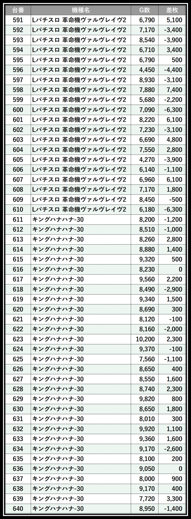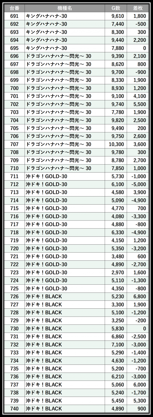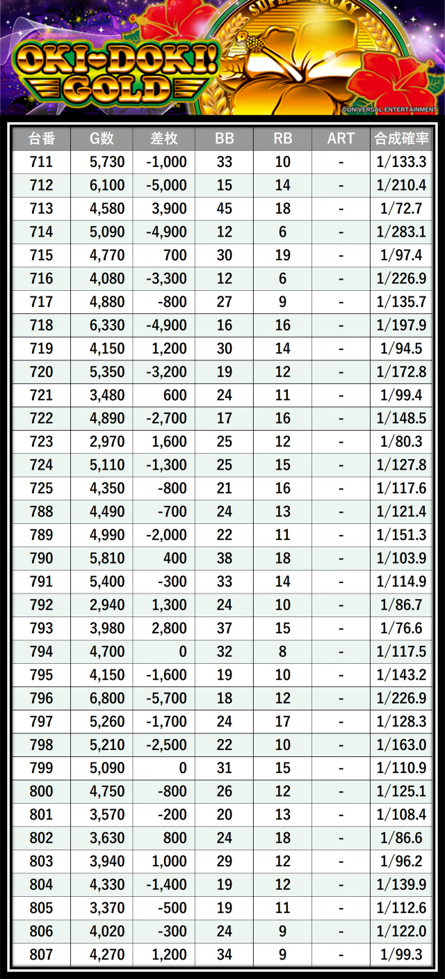 ※差枚数順に掲載しています
