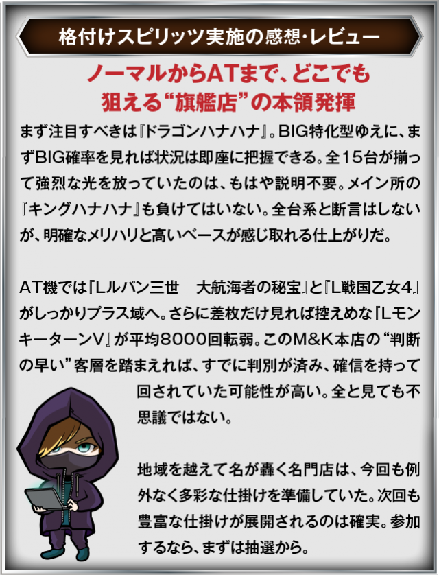 11月30日(日) M&K本店にて、DMMぱちタウンの「格付けスピリッツ」を実施。