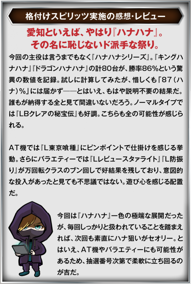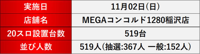11月2日(日) MEGAコンコルド1280稲沢店にて、DMMぱちタウンの「格付けスピリッツ」を実施。