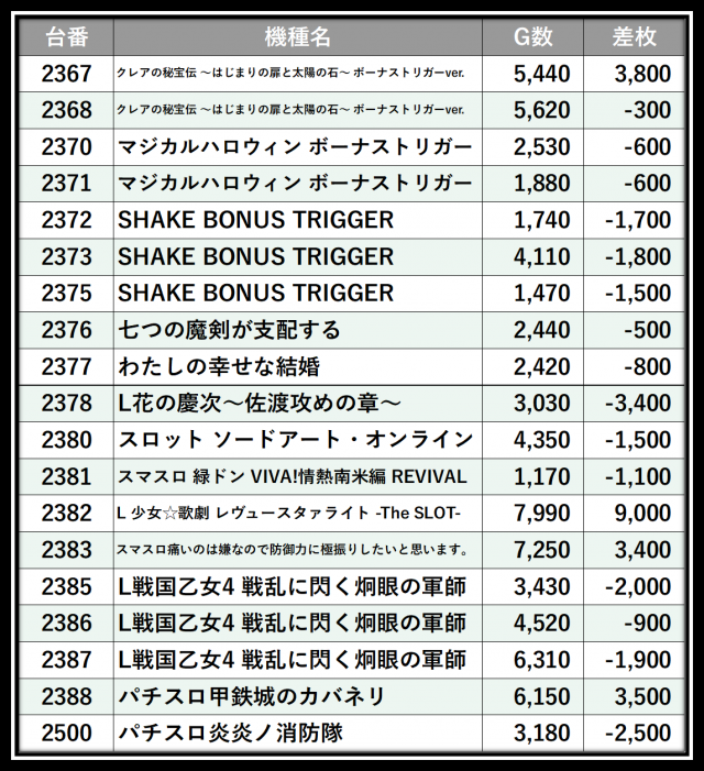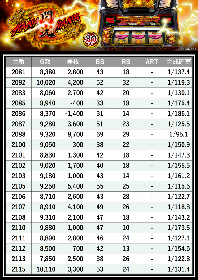 その結果の中から、ぱちタウンが注目すべきポイントを厳選してユーザーにお届け!プレイヤーが楽しんだ一日を下記データにて振り返ってみて欲しい。