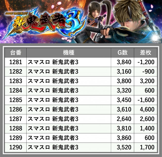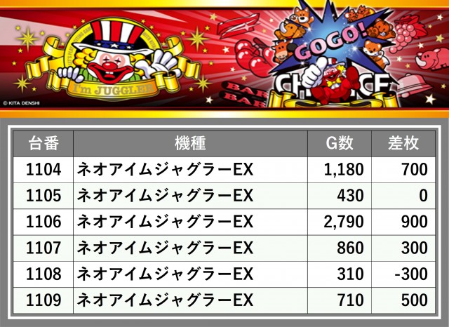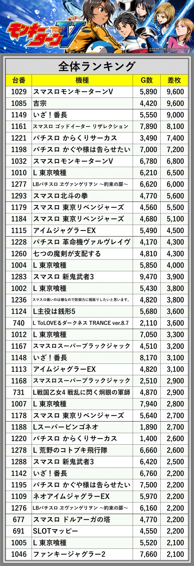 厳選された取材対象機種をはじめ、その他スロット全体から好記録が飛び出した!プレイヤーが楽しんだ1日を下記データにて振り返ってみて欲しい。