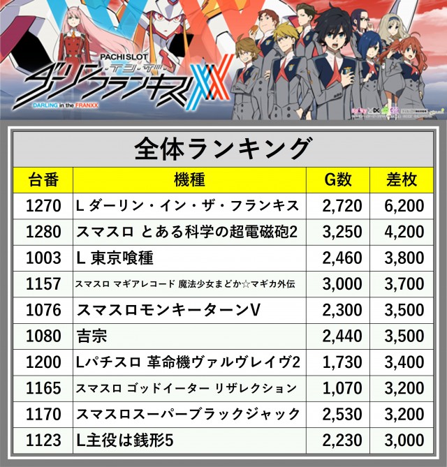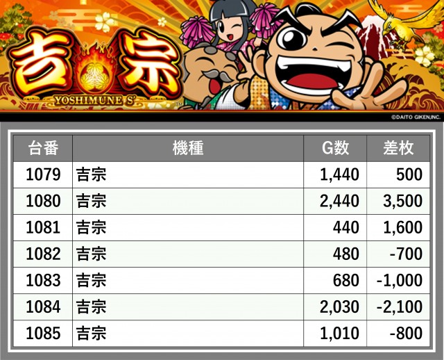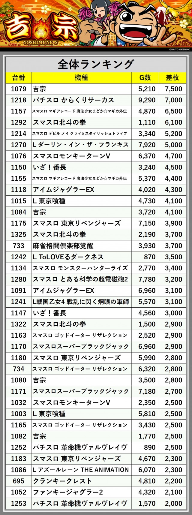 厳選された取材対象機種をはじめ、その他スロット全体から好記録が飛び出した!プレイヤーが楽しんだ1日を下記データにて振り返ってみて欲しい。