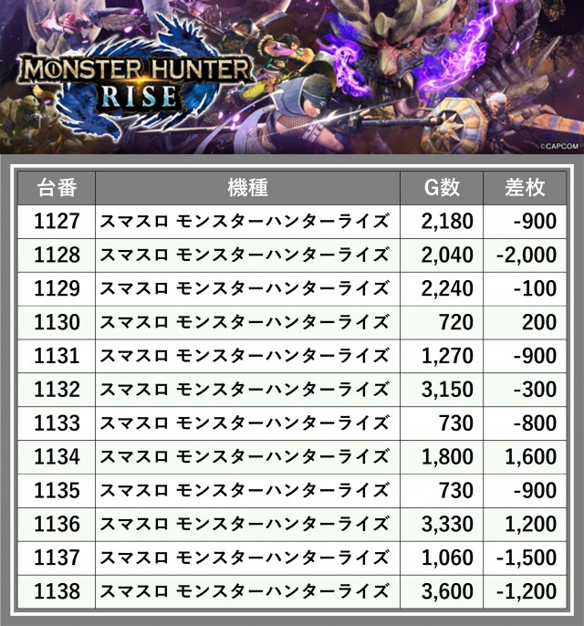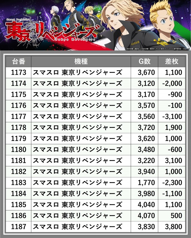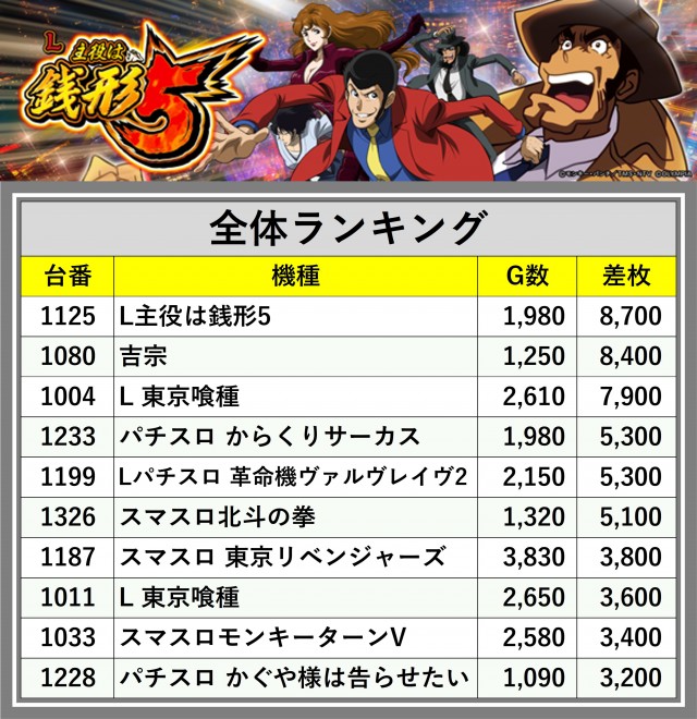 ※差枚数順に掲載しています