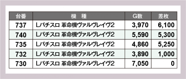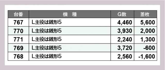 ※差枚数順に掲載しています