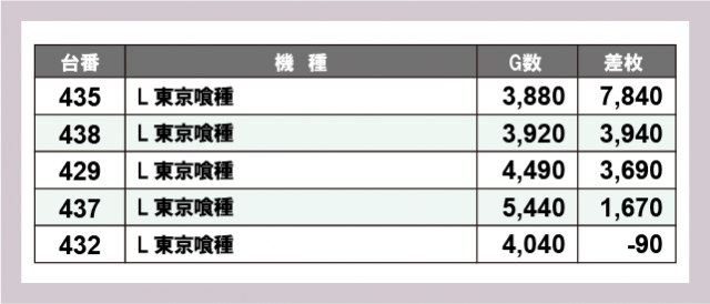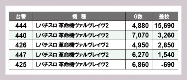 ※差枚数順に掲載しています
