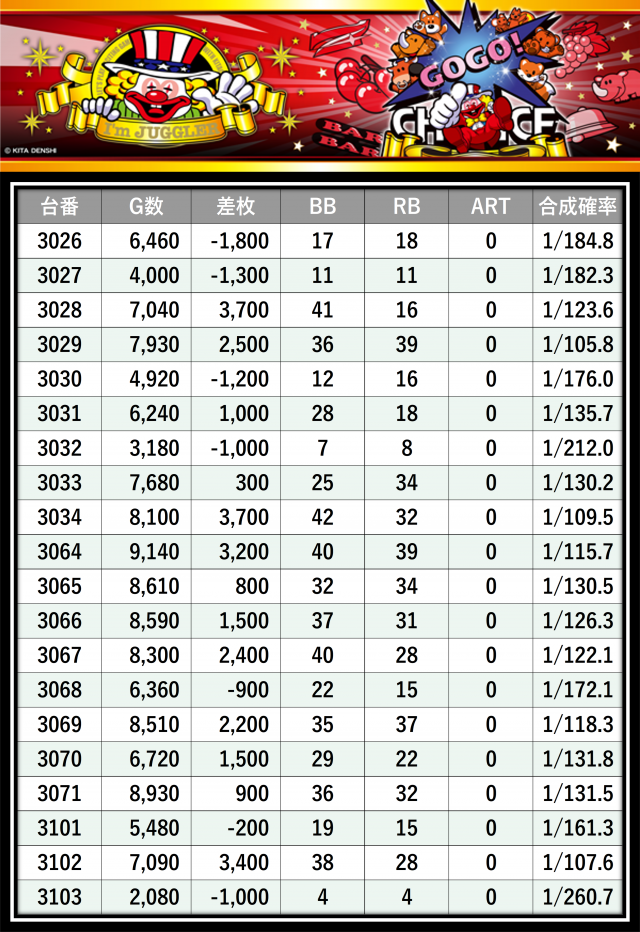その結果の中から、ぱちタウンが注目すべきポイントを厳選してユーザーにお届け!プレイヤーが楽しんだ一日を下記データにて振り返ってみて欲しい。