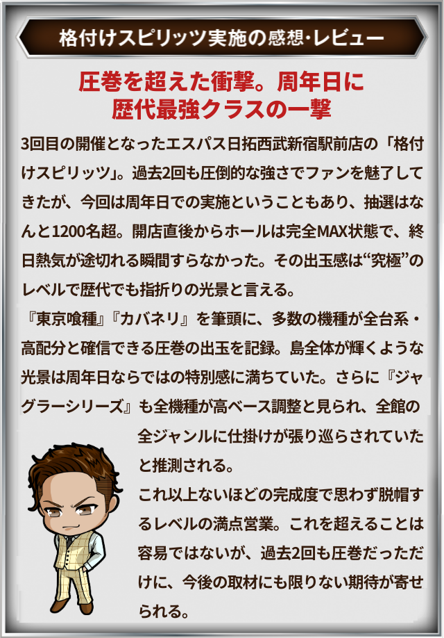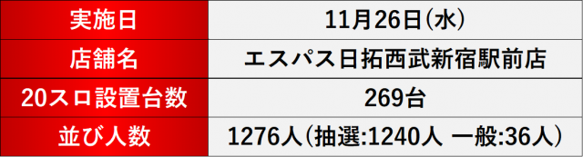 11月26日(水)エスパス日拓西武新宿駅前店にて、DMMぱちタウンの「格付けスピリッツ」を実施。