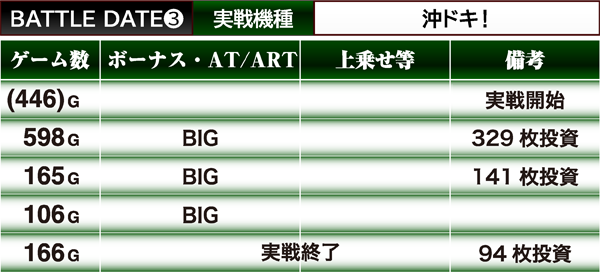 隣の方の上手な連チャンを羨むものの、「沖ドキってこんな風にして出るんだ」と勉強させてもらいましたw。