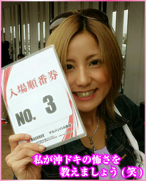 前回、井上由美子さんが来店した影響か雨にも関わらず、朝から多数のお客様が抽選に並んでいました。何を打つか悩むなか、常連さんのお話を聞いた結果、「沖ドキ!」か!?