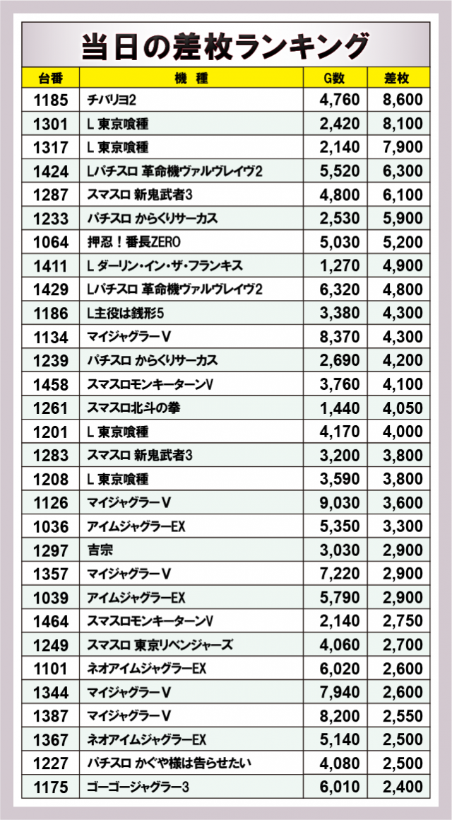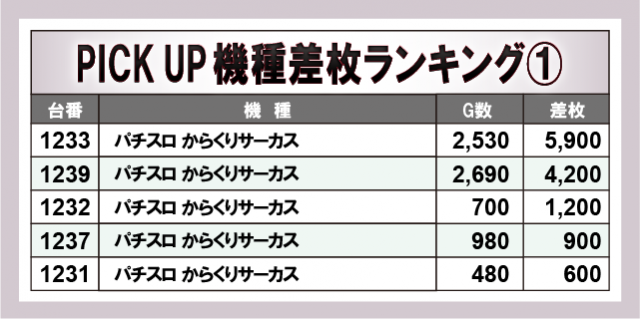 ※差枚数順に掲載しています。