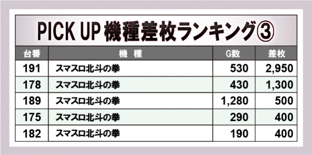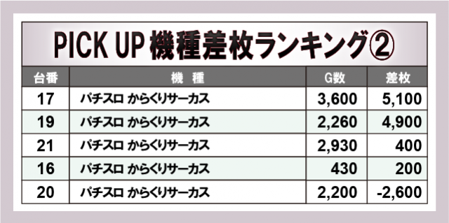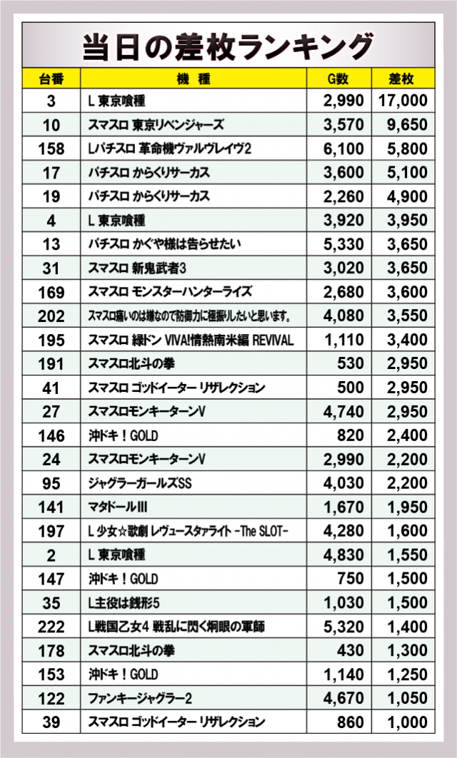 ※差枚数順に掲載しています。