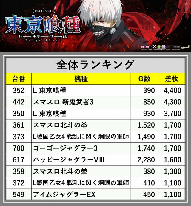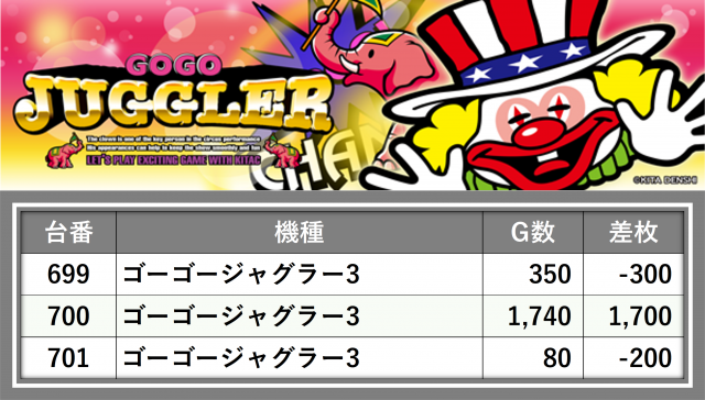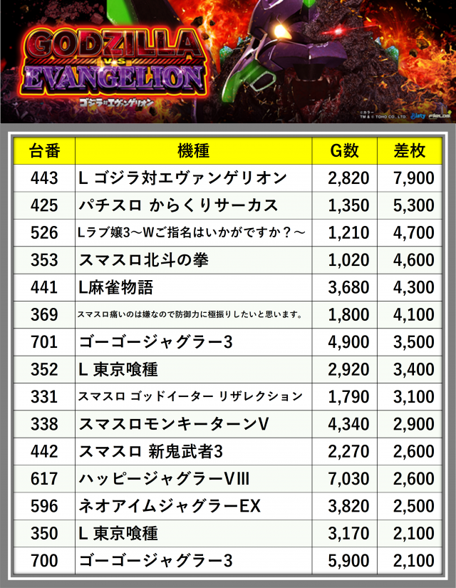 厳選された取材対象機種をはじめ、その他スロット全体から好記録が飛び出した!プレイヤーが楽しんだ1日を下記データにて振り返ってみて欲しい。
