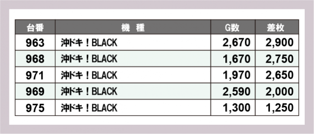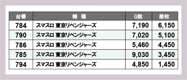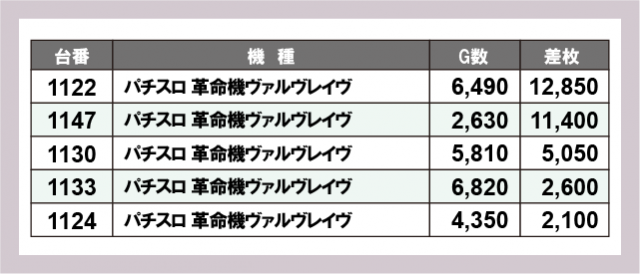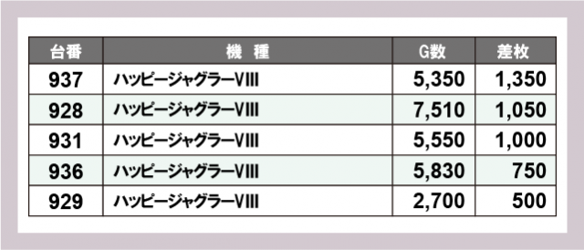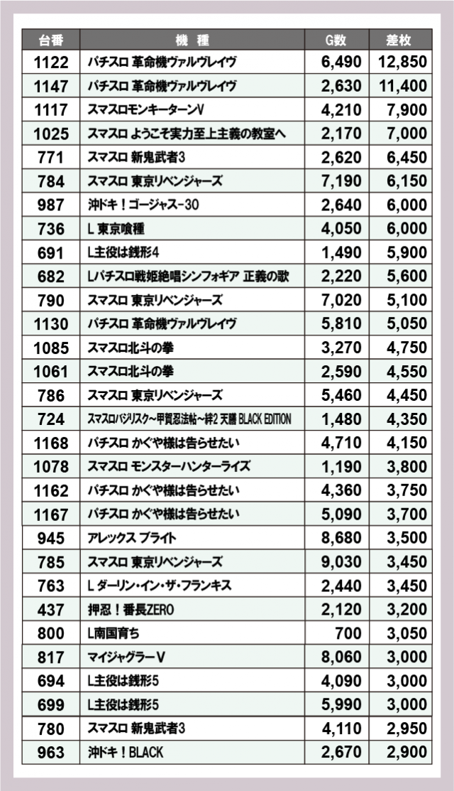 ※差枚数順に掲載しています