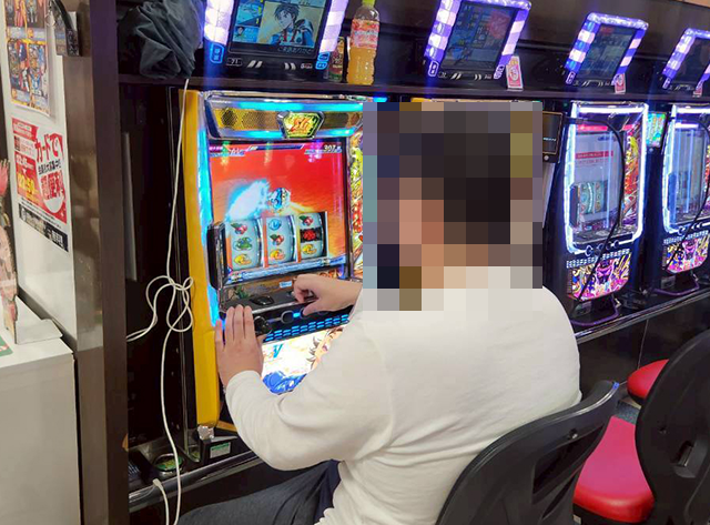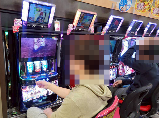 14時半を過ぎた頃は、「スマスロ 新鬼武者3」に空き台がなく、プレイヤーは楽しそうに遊技中。