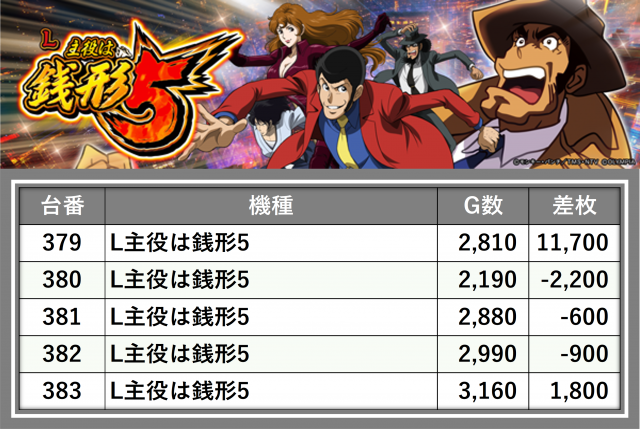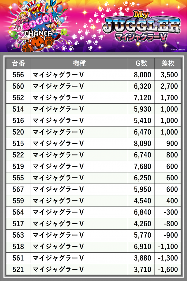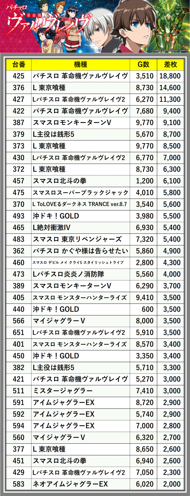 厳選された取材対象機種をはじめ、その他スロット全体から好記録が飛び出した!プレイヤーが楽しんだ1日を下記データにて振り返ってみて欲しい。