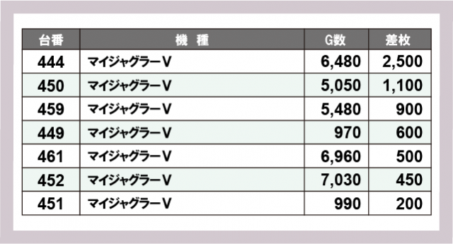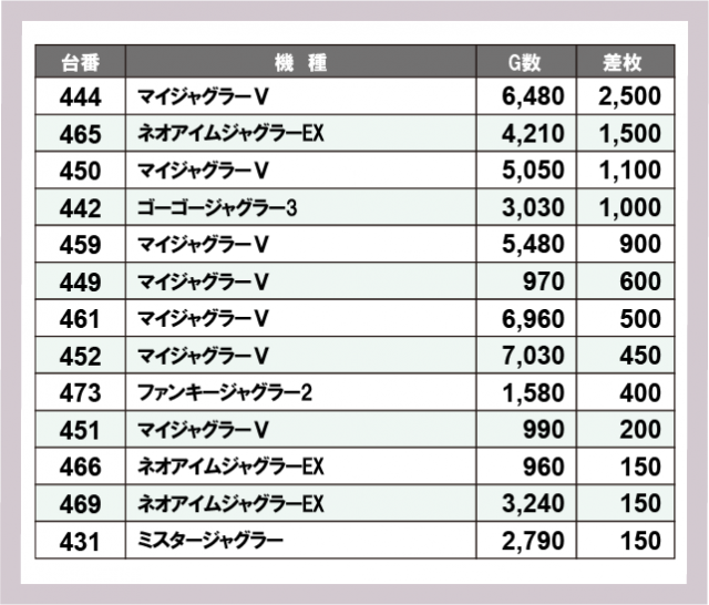 ジャグラー差枚ランキング