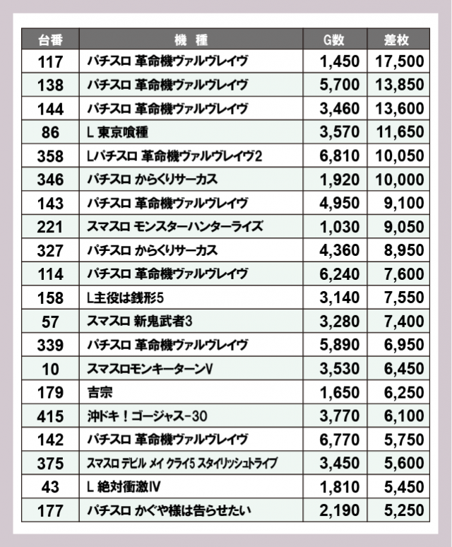 機種別差枚ランキング